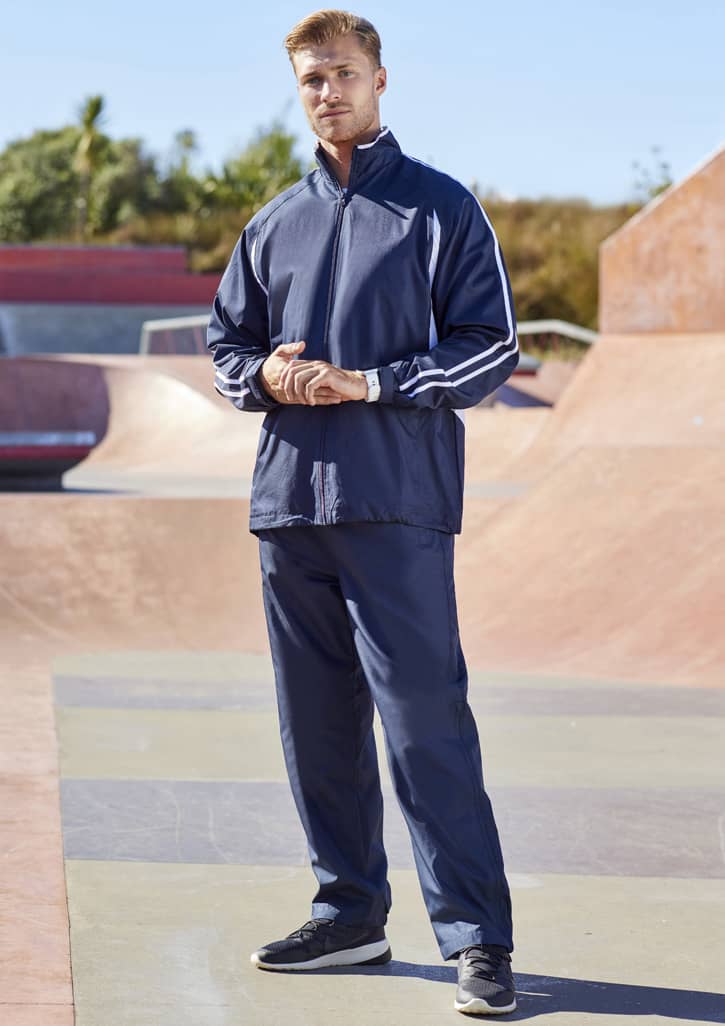 Features: Elasticated waist with drawstring 2 Open side pockets and back zipper pocket Bottom leg zipper to approximate knee height to allow pants to be pulled over boots/trainers Fabric: Outer: 100% Micro Fibre Jacquard Ripstop with Micro Fibre panels and piping detail Upper leg inner: Single jersey lining Lower leg inner: 100% Polyester Taffeta lining Sizes: XS - 3XL, 5XL