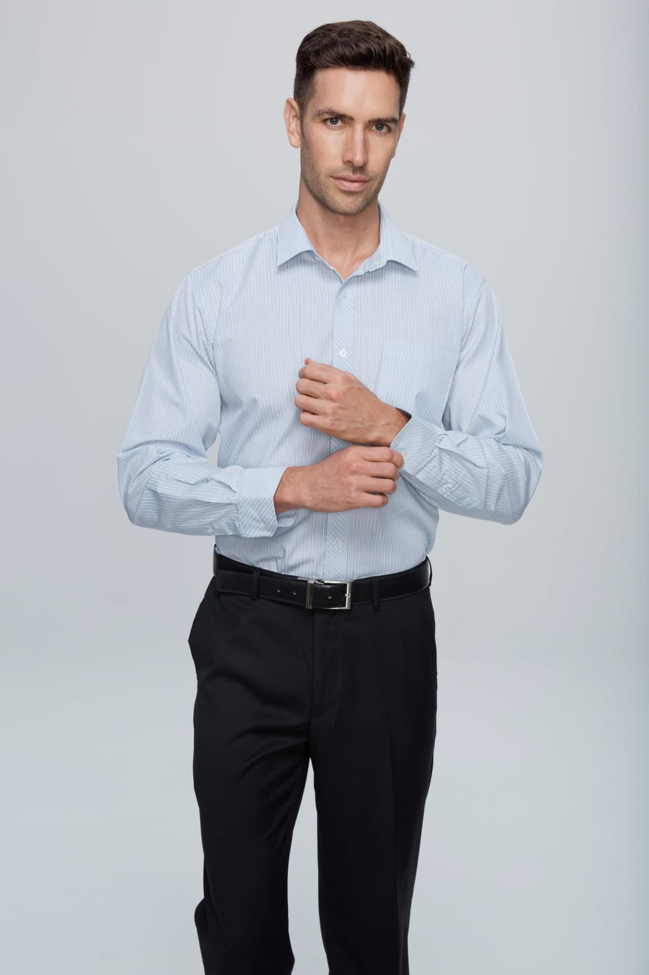 Style: 1906L Sizes: XXS - 5XL Fabric: 65% polyester/35% cotton with an anti-pilling treatment Features: Woven corded twill stripe fabric features an angled arrow head finish at the back of the collar Two sleeve lengths are available, with a pleated bias cut placket contrasting cuff on the long sleeve