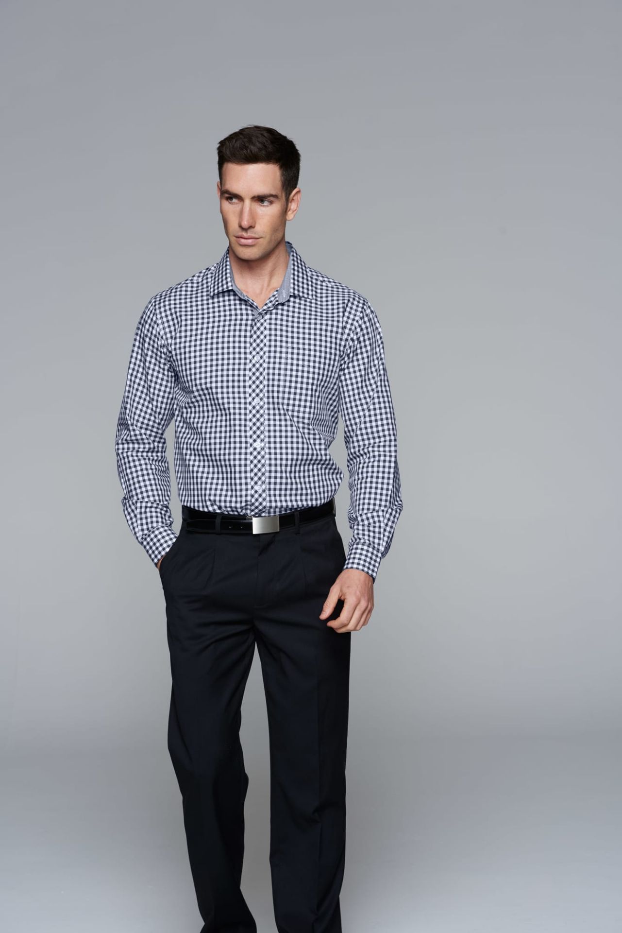 STYLE: 1909L Sizes: XXS-5XL Fabric: 65% cotton 35% polyester Features: Our new classic cut cotton rich shirt has a fashionable check design A smaller subtle hounds tooth check inside the collar, placket and under the cuff as well as a practical left chest pocket Anti pill treatment 3 Colours: French Blue, Claret Red and Black