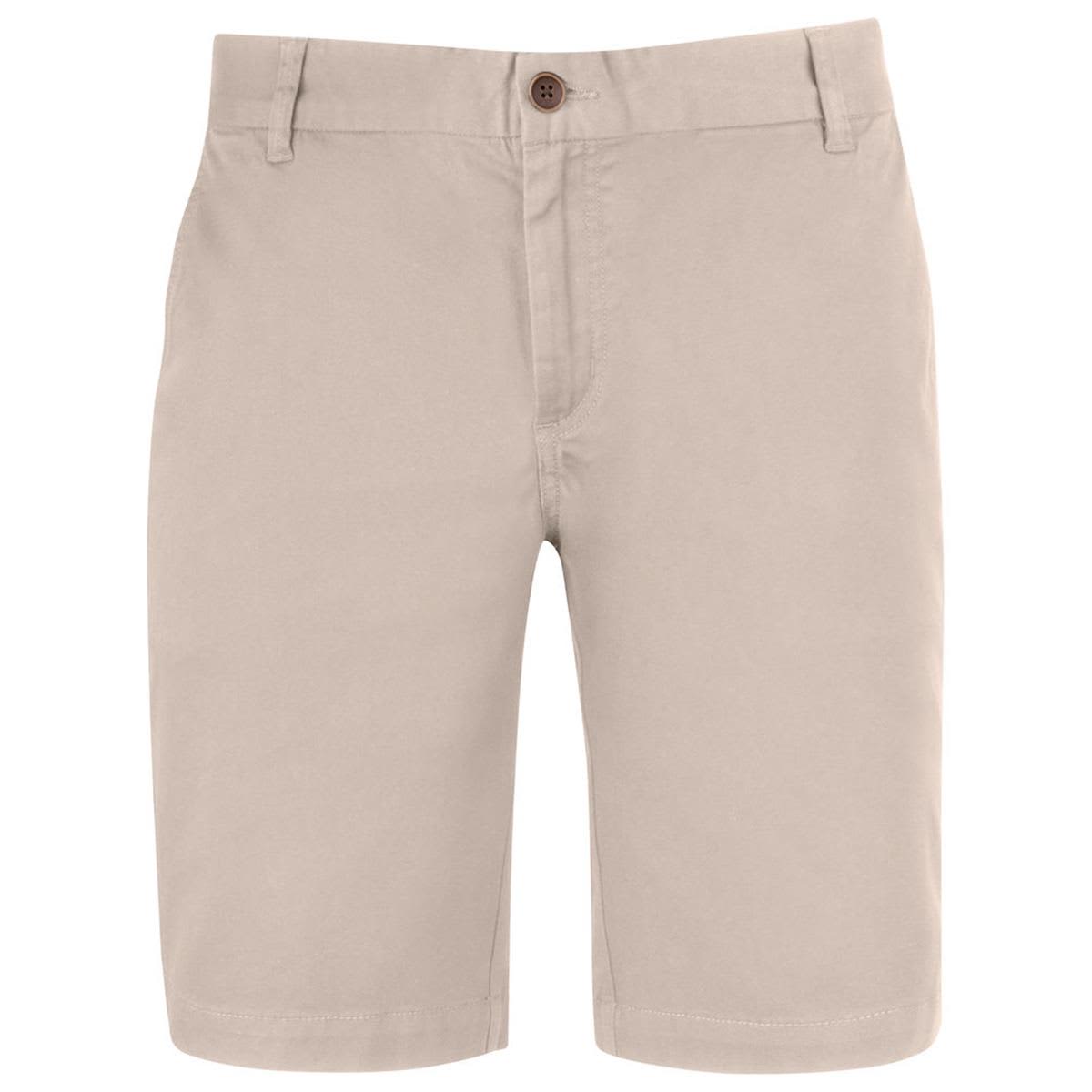 Men's durable classic twill shorts crafted in stretch cotton. Specifications * Slanted side pockets and jetted pockets at back. * Contrast button at fly and at back pocket fastenings. * Oeko-Tex Standard 100 Certified. * Product Material: 98% cotton, 2% elastane, 290g/m2 * JH410_Size Chart.pdf