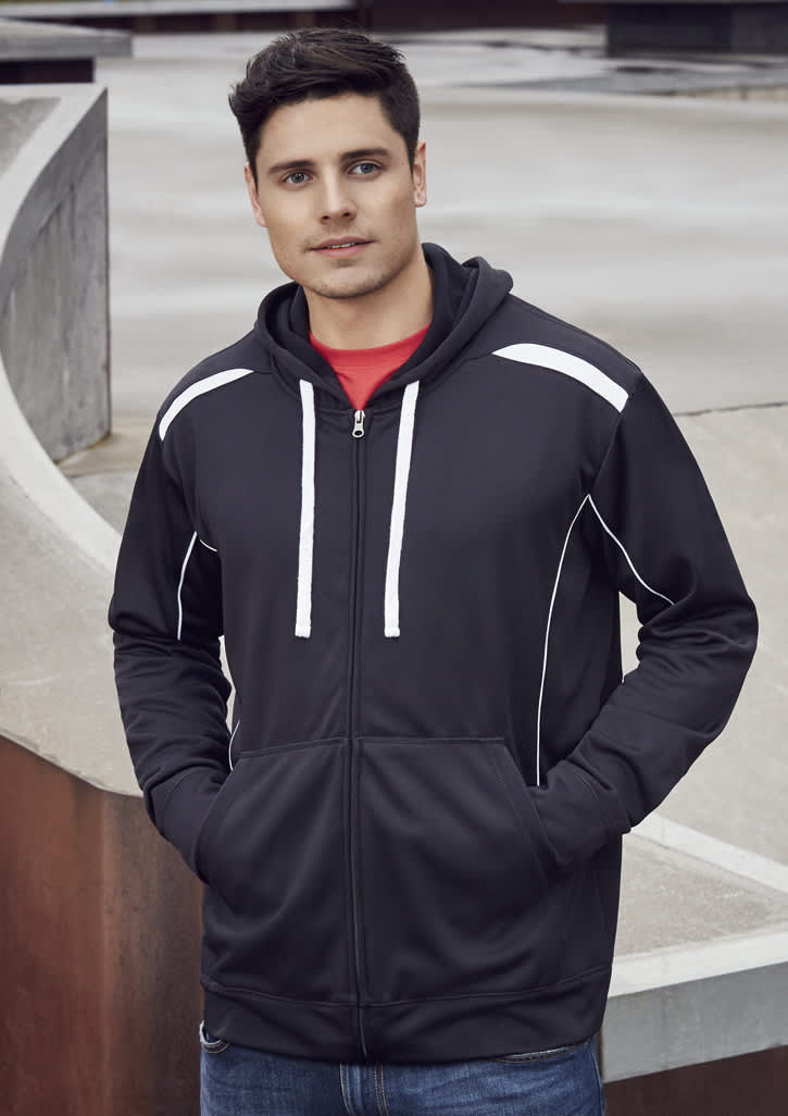 Features: Contrast shoulder panels and piping Full front zipper with kangaroo pocket Matching modern loose-fit hem ribbing Fabric: 100% Polyester Fleece 245 GSM Sizes: S - 3XL, 5XL