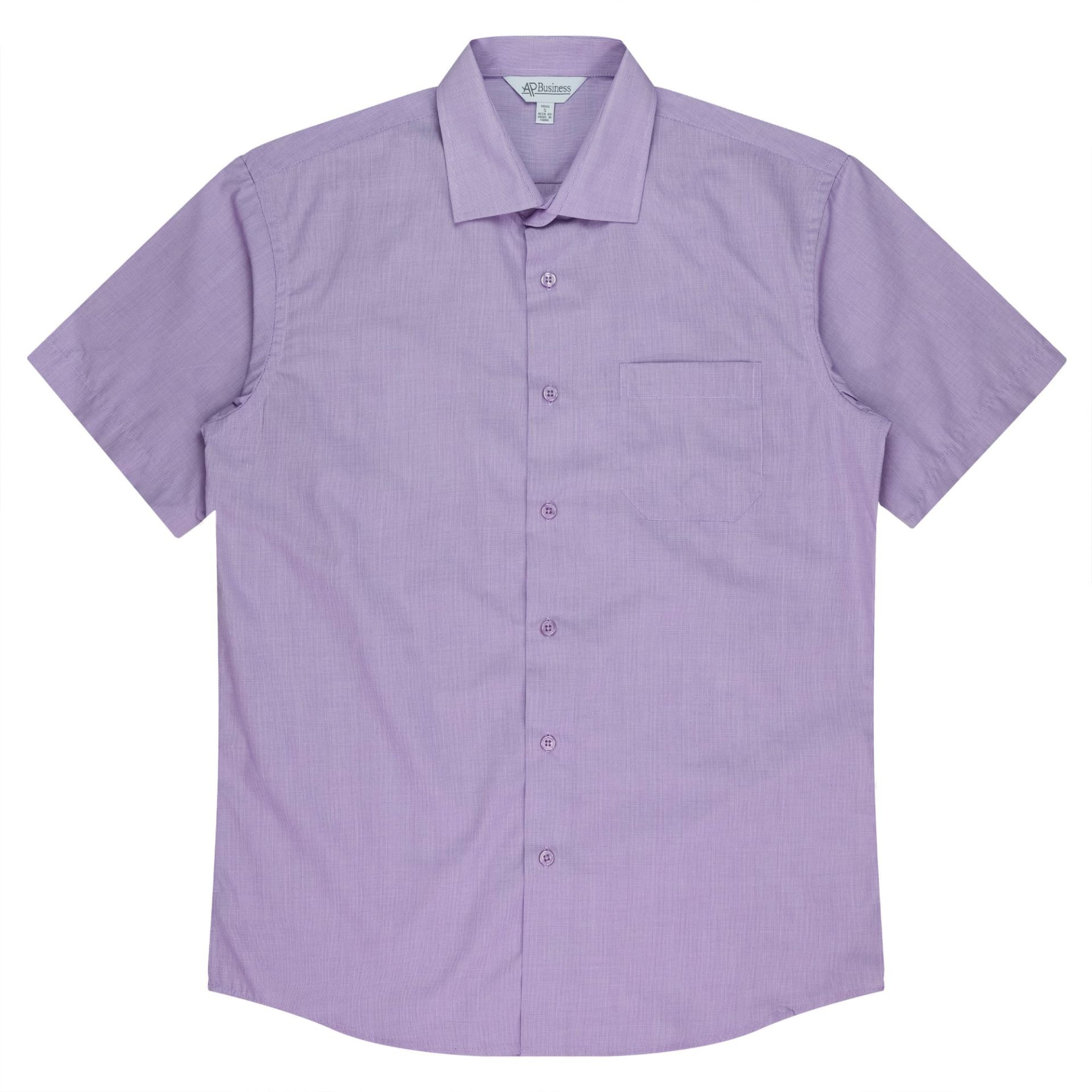 Style: 1902S Sizes: XXS-5XL Fabric: 65% Polyester 35% Cotton Features: This shirt features a doubled turned placket with an angle edge on the long sleeve cuffs. Back yoke with side comfort pleats. Anti-pilling treatment. 3 "micro-check" Colours: Shadow Grey, Mauve, Mid Blue