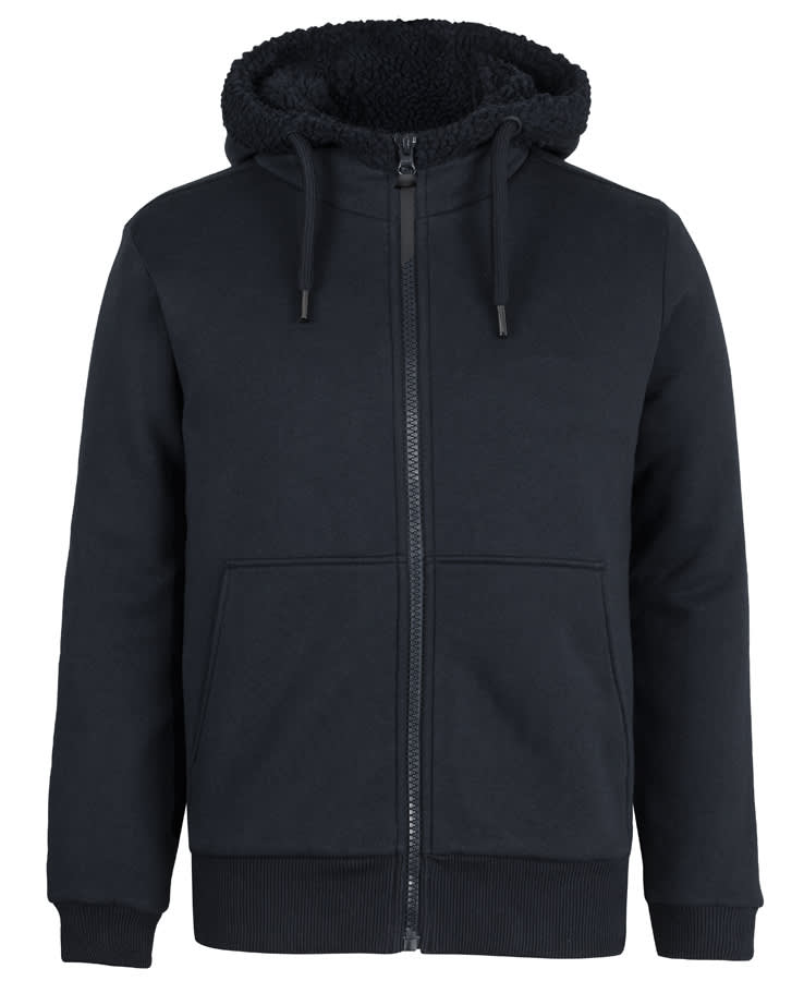 Urban fit | 330gsm Cotton/Polyester fleece shell with 340gsm lined shepherd fleece body | Taffeta quilted sleeve for extra warmth and dexterity | Shepherd fleece lined hood and full zip high collar to protect your head and neck | Embroidery zipper