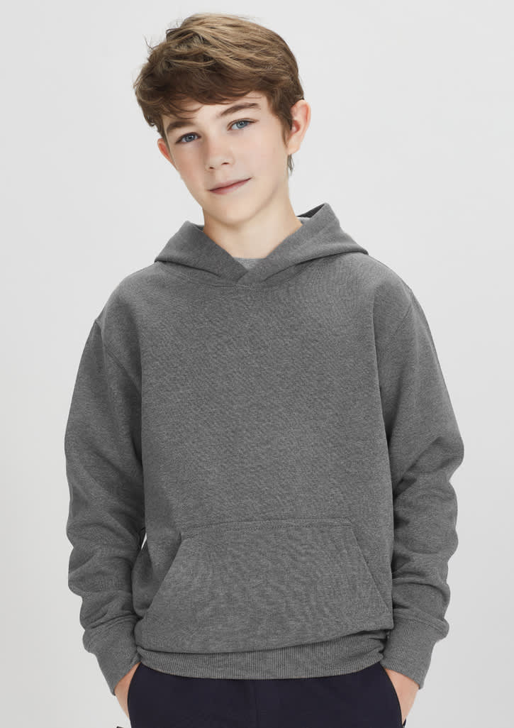 Features: Traditional front kangaroo pocket Adults style features hood with wider ‘shoelace’ drawstring No drawstring on Kids – keeping kids safe Knitted ribbed band on hem and cuff Fabric: 55% Cotton Fleece / 45% Polyester, 320gsm Sizes: 4 - 14
