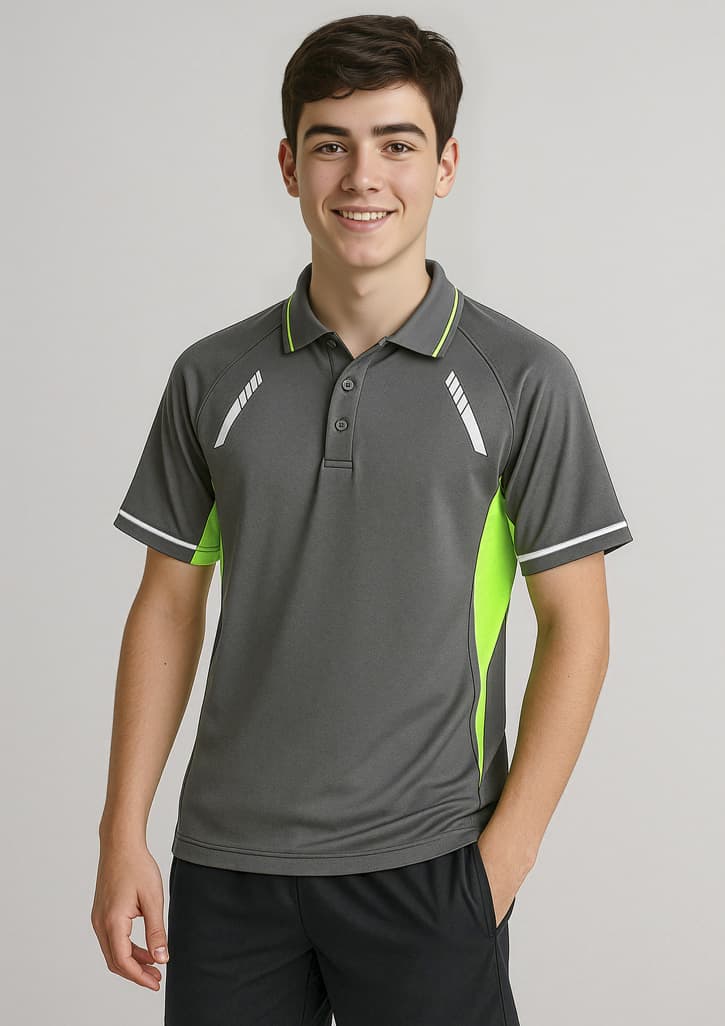 Features: Silver reflective trims help you stand out Dynamic design with bold colour contrast Mesh panels for greater ventilation where you need it most Knitted stripe collar Loose pocket included Fabric: 100% BIZ COOL™ Micro Polyester 155 GSM UPF 50+ Sizes: 4 - 16