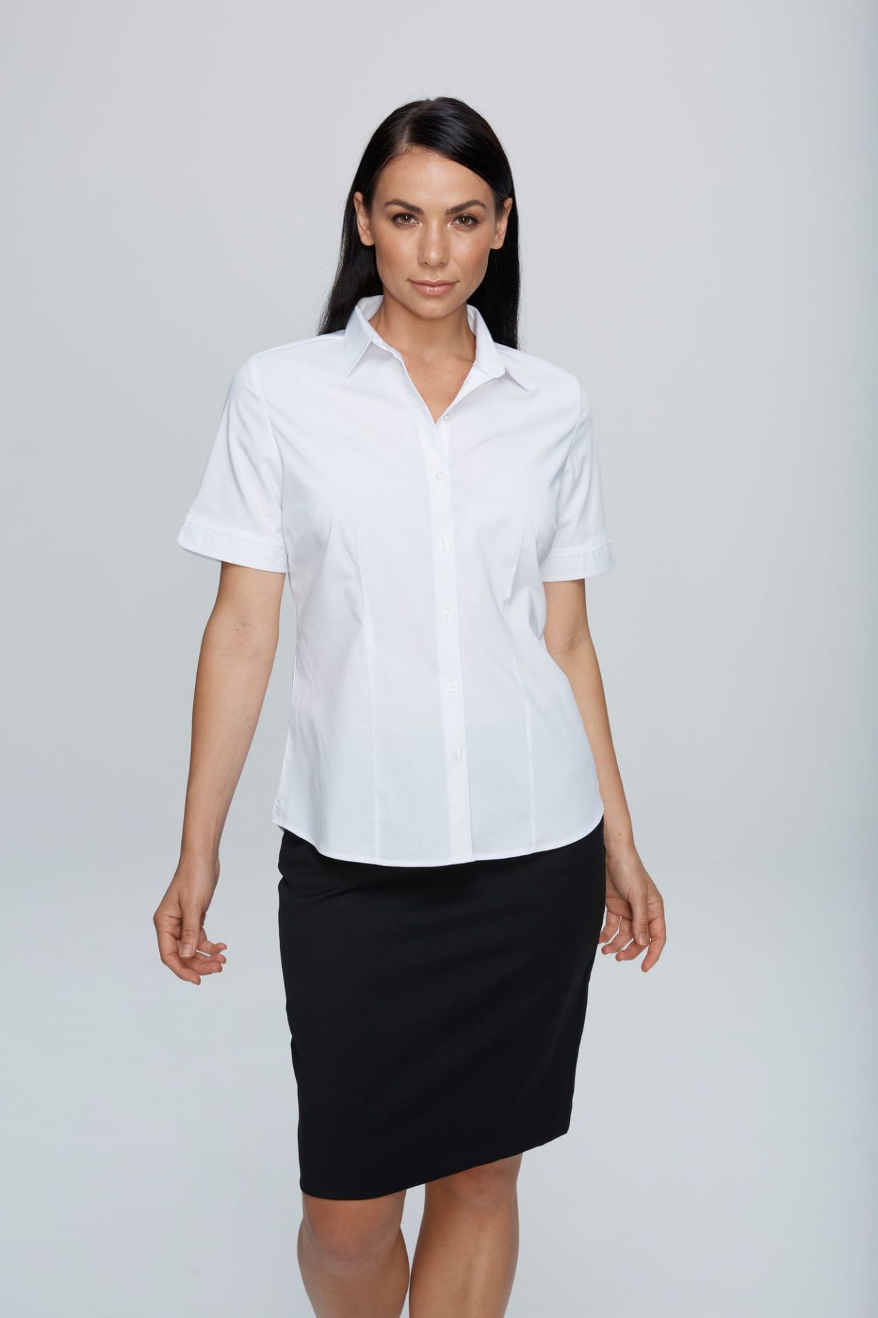 STYLE: 2910S Sizes: 4-26 Fabric: 65% polyester 35% cotton Features: With a stylish feminine cut these lightweight shirts are easy care and quick dry with almost zero maintenance. Anti pill treatment 2 Colours: Black, White
