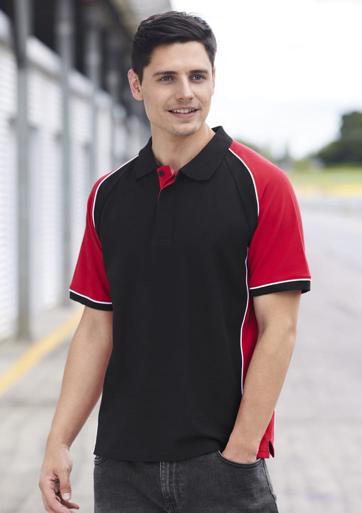 Features: Contrast panel with piping Knitted collar and cuff Side splits with twill tape Loose pocket included Fabric: 65% Polyester, 35% Cotton Pique Knit - low pill yarn 210 GSM UPF rating - Excellent Sizes: S - 3XL, 5XL
