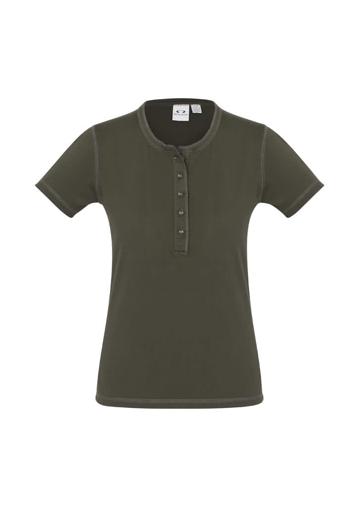 Features: Stone washed for an authentic vintage look Crew neck with flat-locked stitching detail Henley style placket with fabric covered fish-eye buttons Designed to softly fade over time Fabric: 100% Cotton Single Jersey fabric 180 GSM UPF rating - Excellent Sizes: 6 - 20