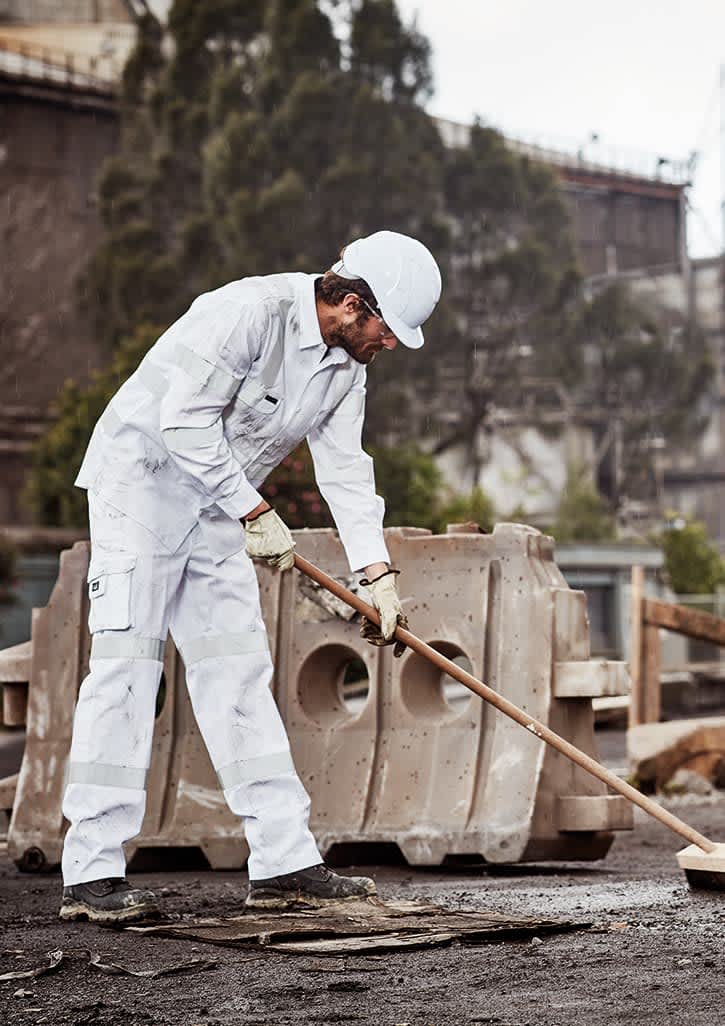 Features: Compliant with Australian night time road work requirements with double hoop leg tape Bio Motion tape configuration to improve recognition of human shape at distance Made from durable hard wearing cotton drill Large cargo pocket with unique side zip pocket built into bellow Mobile phone pocket Two side hip pockets Two back hip pockets Fabric: 100% Cotton Drill - 280 gsm Sizes: 72 - 132