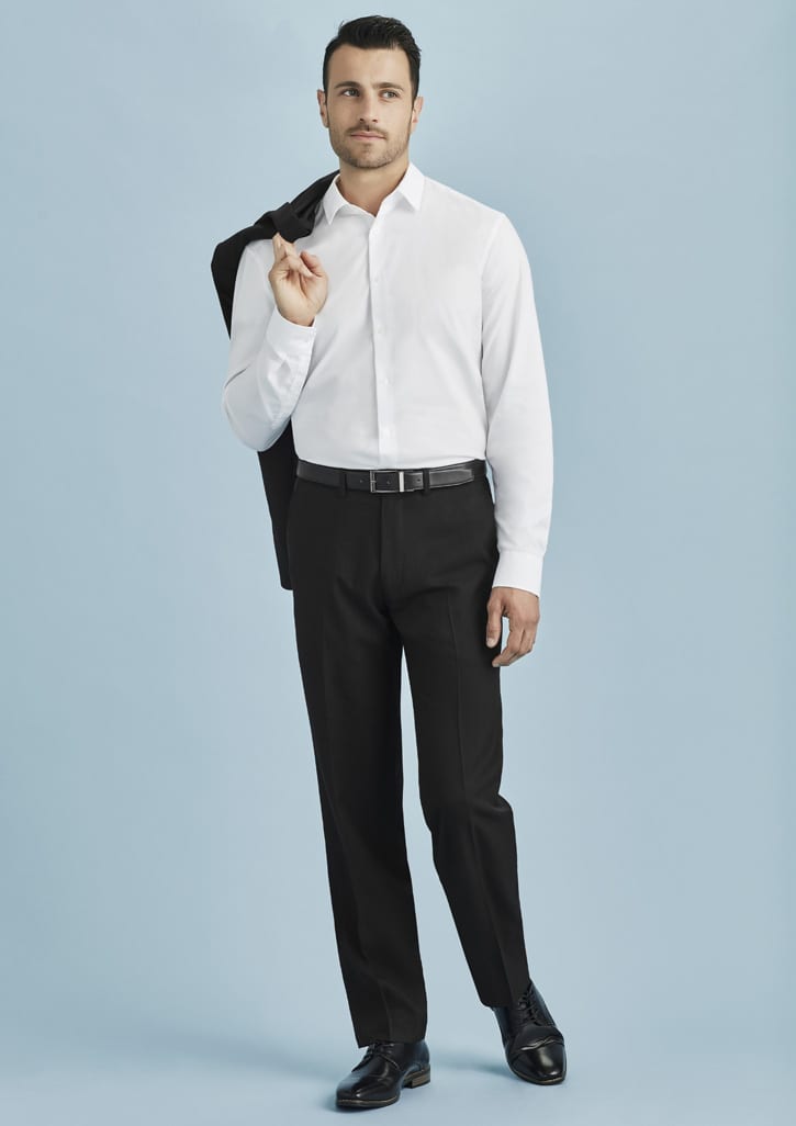 Features: Flat front and straight through the leg. With hidden elastic waistband for extra stretch and comfort. A ‘roomier’ mid-rise and deep side pockets. Fabric: 92% Polyester 8% Bamboo Charcoal Versatile and durable suiting fabric. Breathable fabric perfect for warmer climates keeping you cool and dry. Mechanical stretch for extra comfort and anti-bacterial finish to eliminate odour. Sizes: 107S - 127S (AUS/NZ) 42S - 50S (CA/US) Cares: Trousers - Warm or cold machine wash. Wash with similar colours. Do not bleach, soak or tumble dry. Line dry in shade. Warm iron. Recommend dry clean 30°C.