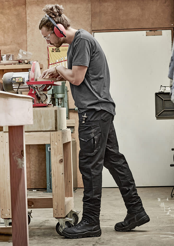 Features: Ripstop construction allows the fabric to be lightweight without compromising on durability Stretch fabric provides unrestricted movement while at work Modern straight fit Double layer knee Triple stitched crotch panel Large side welt pocket Large cargo pocket with inverted box pleat for increased storage Multi-tool pocket with internal stretch webbing to store 3 tools Mobile phone, ruler and pen pockets 2 Back hip pockets 2 Side waist pockets with wide openings Fabric: 98% Cotton, 2% Elastane Square Weave Cotton Ripstop, 240 GSM Sizes: 72R - 132R