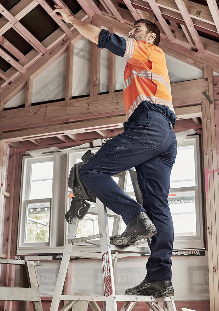 Features: Lightweight soft fabric provides cool comfort at work Modern fit and styling Triple stitched crotch panel One large cargo pocket with box pleat for added storage One mobile phone pocket with flap closure One ruler pocket and pen partition Two back hip pockets with stitch pattern design Two side waist pockets with wide openings Contrast inside waistband Fabric: 100% Cotton - 200 gsm Sizes: 87S - 132S