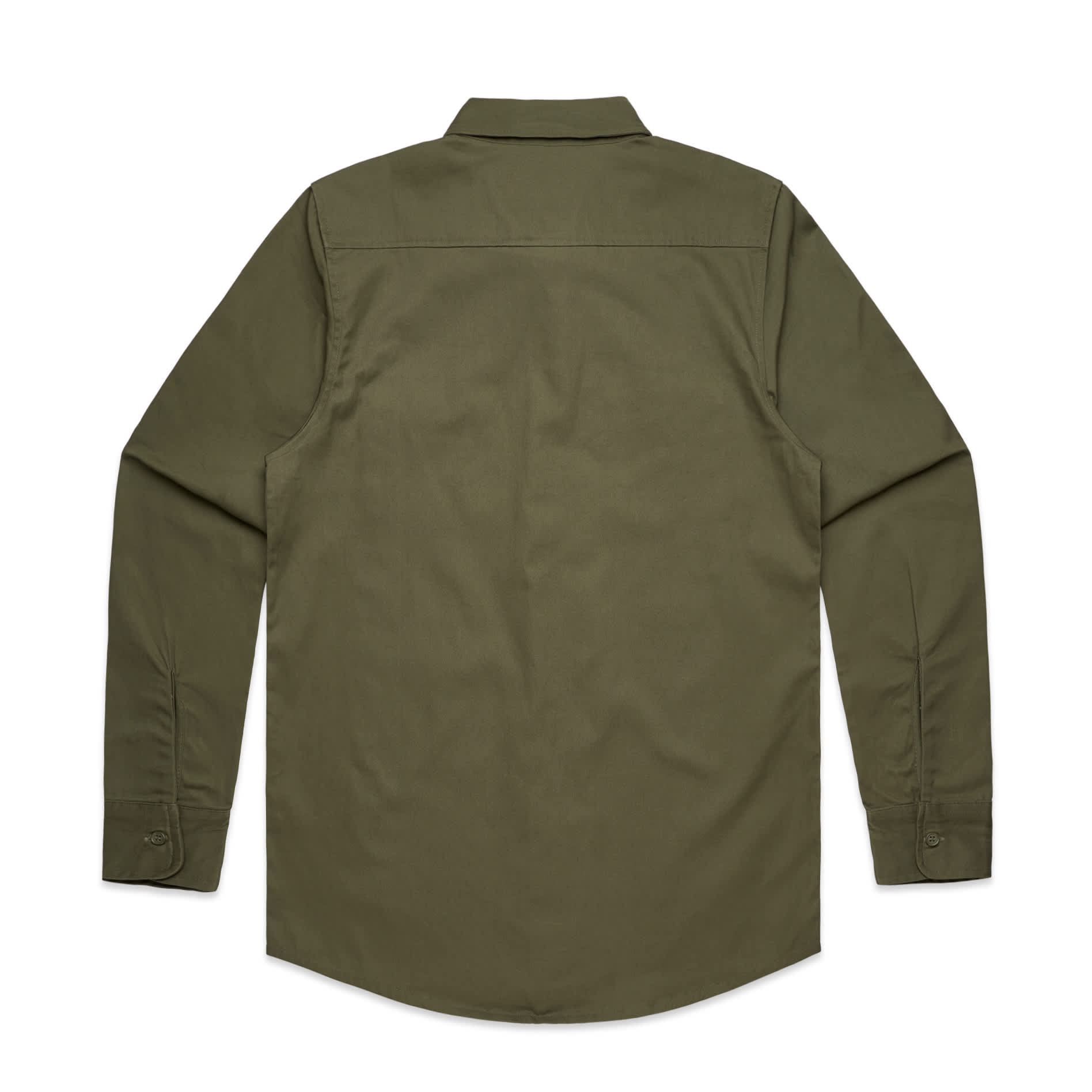 Relaxed fit Long sleeve button up shirt, chest pockets with flap and button closures Heavy weight, 240 GSM 100% cotton drill Tonal buttons, adjustable cuffs, side seamed, back yoke, preshrunk to minimise shrinkage