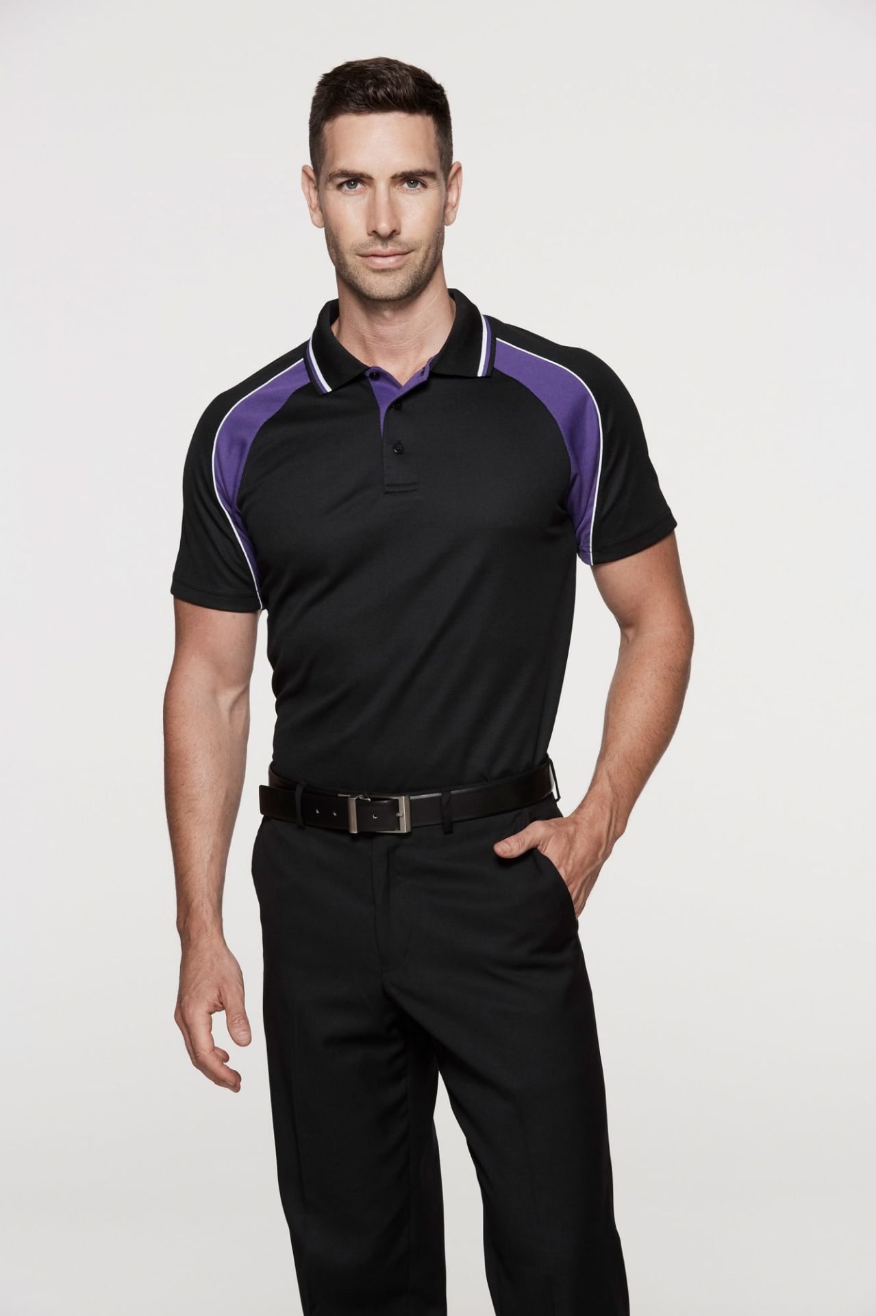 STYLE: 1309 Sizes: S-3XL+5XL Product Description: Panorama uses the same cotton back fabric as our Paterson and Portsea. Perfect for those who like the performance of polyester but with the comfort derived from feeling cotton against the skin. The design is unique with the contrast panels following the lines of the raglan sleeves and the knitted collar with contrast stripes Fabric: 180gm 80% Polyester 20% Cotton Features: Cotton back pique knit Dri-wear antibacterial finish Easy care fabric Jacquard knitted collar with contrast stripes Contrast under placket & piping Coloured highlight piping at lower front panel and sleeve panel Three piece raglan sleeve Three button placket Loose pocket provided (men's only)