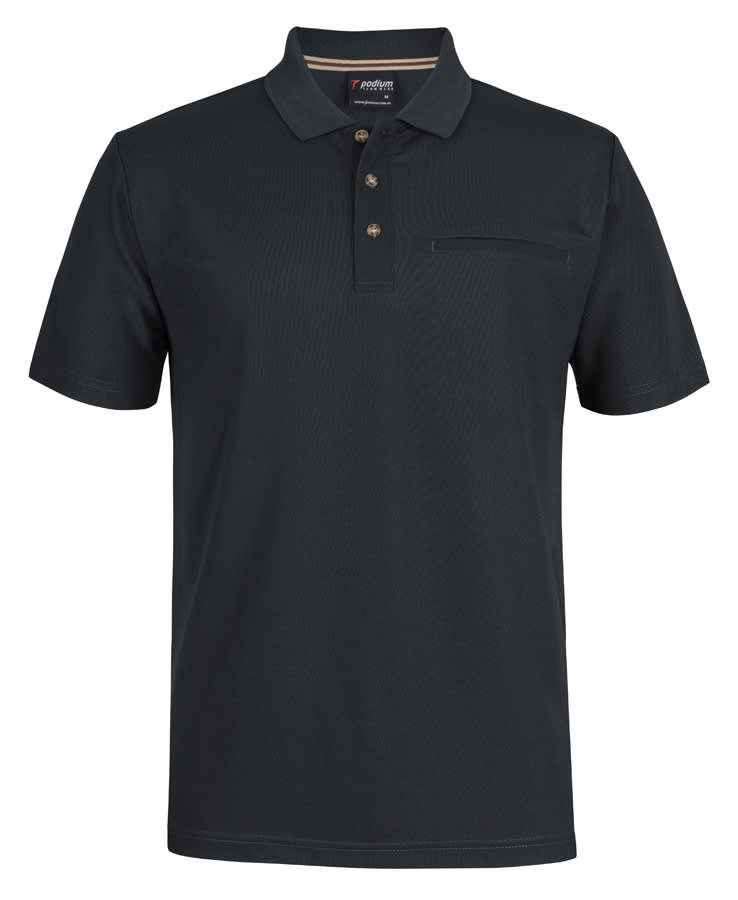Classic fit | 100% Recycled Polyester, 160gsm needle eye knit fabric | 3-button placket | Left hand chest welted pocket | Podium Cool™ moisture wicking fabric designed to help keep you cool and dry | Easy care fabric, quick drying | Complies with standard AS 4399:2020 for UPF protection