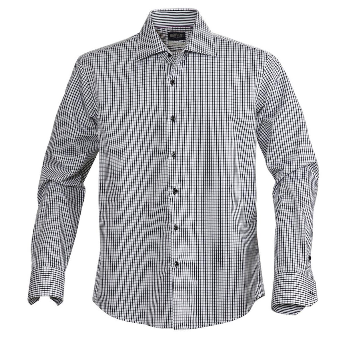 High quality Men's modern fit shirt in easy care treated fabric. Specifications * Reinforced seams in collar and sleeve ends. * Checked pattern with coloured neck tape and contrast stripe inside cuffs, placket and collar. * Product Material: 100% combed cotton. * Modern/Slim Fit * JH304S_Size Chart.pdf