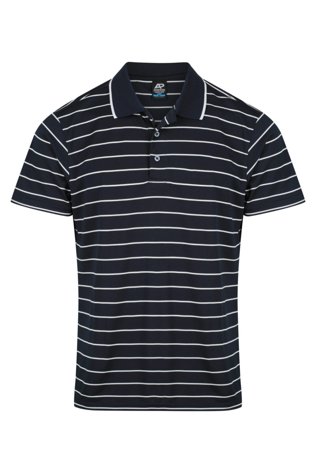 STYLE: 1324 Sizes: S - 5XL Product Description: In a world of trends, certain styles remain classic. The traditional striped Vaucluse polo is equally suited in the office, Friday afternoon drinks, club committee meetings or that BBQ on a Saturday. Perfect uniform choice for organisations seeking a traditional look with a hint of casual. Made with a wide knit polyester for comfort and breathability, this will surely be a team favourite Fabric: 180gm 100% Polyester engineering stripe Features: Set in sleeve polo with jacquard knitted collar Dri-wear antibacterial finish Self fabric inner comfort band Side splits for modern fit and enhanced movement Loose pocket included (men’s only)
