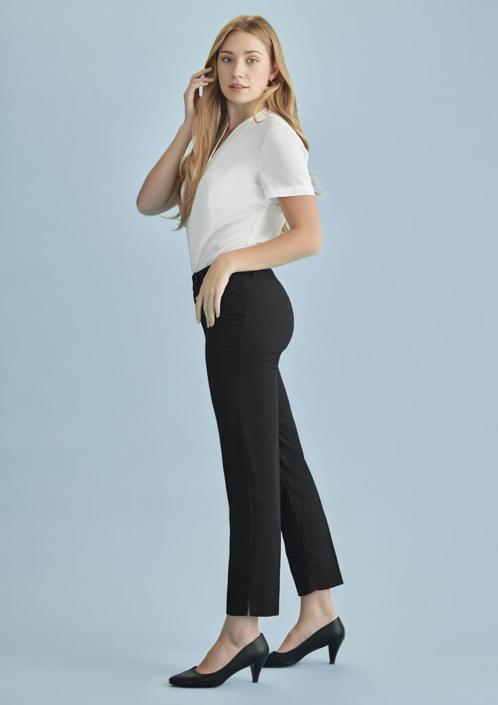 Features: Make a statement with slim leg pants that taper into the ankle with a side splits, belt loops and front horizontal pockets under the waist band. Fabric: Cool Stretch Suiting: 92% Polyester, 8% Bamboo Charcoal; Versatile and durable suiting, breathable and perfect for warmer climates keeping you cool and dry; Mechanical stretch for extra comfort and anti-bacterial finish to eliminate odour Sizes: 4 - 20 (AUS/NZ) 0 - 16 (CA/US) Cares: Warm or cold machine wash, wash with similar colours, do not bleach, soak or tumble dry, line dry in shade, warm iron, recommend dry clean 30°C.